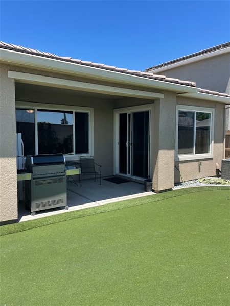 Like-new single-story home built in 2019, offering 3 bedrooms and 2 bathrooms with numerous upgrades throughout. The living room, kitchen, and dining area feature durable tile flooring. The kitchen is equipped with a gas range, dishwasher, granite countertops, and a stylish tile backsplash. The spacious primary suite includes a large bedroom, a bathroom with both a shower and tub, double sinks, and a walk-in closet. Additional features include an indoor laundry room and a 2-car garage with an automatic opener. The backyard is designed for relaxation and entertainment, complete with a covered patio and a putting green. Conveniently located near shopping, restaurants, and Highway 99. BONUS Solar system included to help reduce monthly electricity costs! Pets are negotiable (1 pet under 50 lbs). Applicants must submit a photo of the pet with their application. A signed pet addendum and a $400 pet deposit are required. Please refer to the application for breed restrictions. Renters insurance is required. Please note: This home is not furnished.